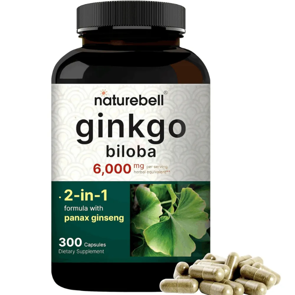NatureBell Ginkgo Biloba 6,000mg with Panax Ginseng 500mg Per Serving 300 Capsules