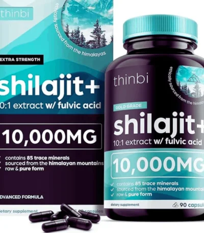 Thinbi Pure Himalayan Shilajit 10000mg Maximum Potency Organic Capsules 90 Count