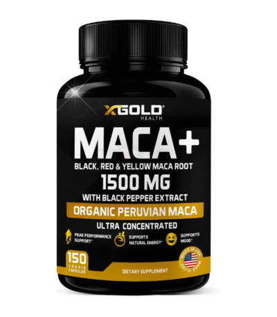X Gold Health Organic Maca Root Powder Capsules 1500mg with Black | Red & Yellow Peruvian Maca Root 150 Caps